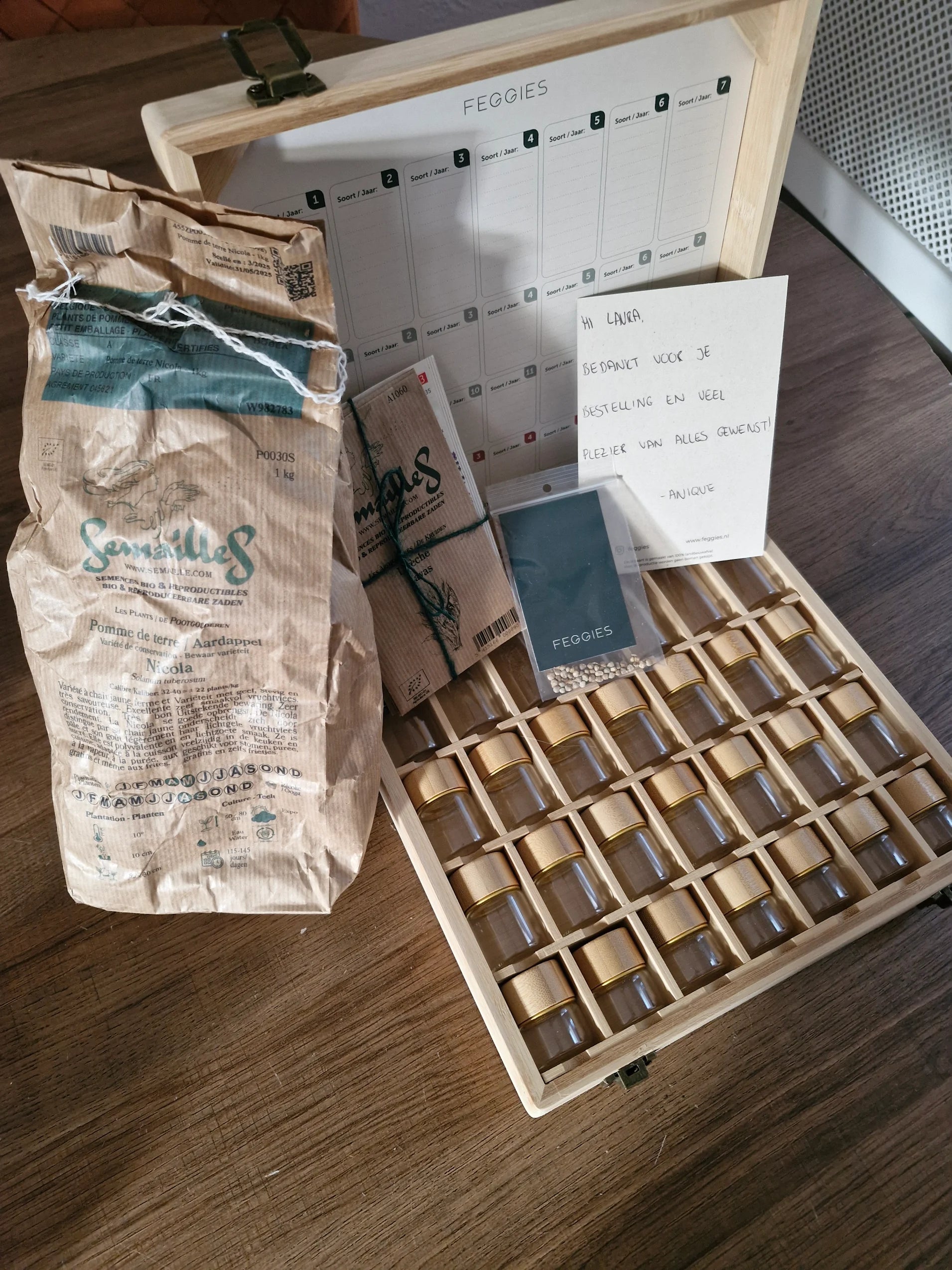 Mijn eerste bestelling bij Feggies gedaan. Ik heb een mooie zaden opslagbox gekocht, pootaardappels en wat zaden voor kruiden. Hoe lief was het dat er een persoonlijk kaartje van de eigenaresse bij de bestelling zat. Bestelling was snel ingepakt en bezorgd. Top!